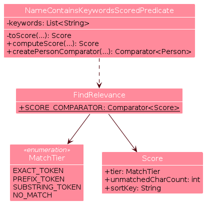 Parser and returned within the ParseResult object.Model components's findSimilarXYZMatch methods (e.g. Model#findSimilarNameMatch) and returned within the CommandResult object.API : Model.java